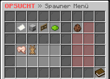 Upgrade deinen Spawner, indem du auf die roten Glasscheiben klickst, um zusätzliche Slots zu kaufen. Dies erhöht die Kapazität und Leistung des Spawners, wie etwa die maximale Anzahl von Mobs, die Erweiterung des Item-Speichers und eine höhere Mob-Anzahl pro Spawn-Ei. Beachte, dass dies in der Bedrock Edition abweichen kann.