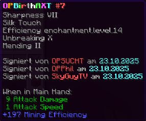 • Verzauberungen: Effizienz VI, Haltbarkeit X, Reparatur
