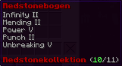 Ein Bogen, der mit der Energie von Redstone pulsiert. Seine Pfeile fliegen endlos (Unendlichkeit) und kehren stets zurück (Reparatur). Mit einer Kraft (Stärke) und einem Schlag (Schlag), die durch die härtesten Blöcke schneiden, ist er ein Meisterwerk für diejenigen, die das Land mit Präzision formen wollen.
