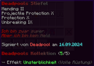 - Bei Kombination der vollständigen Deadpool-Rüstung wird der Träger unsterblich
