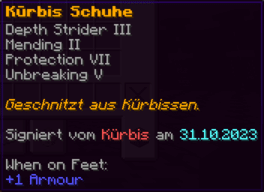 Diese kunstvoll geschnitzten Schuhe aus Kürbissen sind ein Fest für die Augen und bieten mit ihrer Verzauberung von Depth Strider ein müheloses Gleiten durch jedes Gewässer. Sie sind das perfekte Accessoire für den herbstlichen Wanderer.