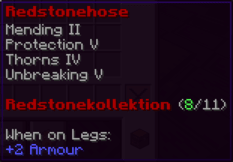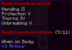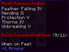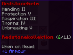 Der Redstonehelm ist ein Schutzschild für den Denker, ausgestattet mit Atemfähigkeit unter Wasser und einer nahezu unzerstörbaren Struktur. Er ist ein wahrer Schatz für Unterwasserabenteurer.
