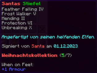 Diese Stiefel, kunstvoll von Santas Elfen gefertigt, sind ein wahrer Segen für frostige Winternächte. Mit Federfall ausgestattet, lässt jeder Schritt den Träger sanft wie Schneeflocken landen.