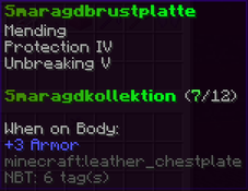 Eine prächtige Brustplatte, gefertigt aus seltenem Smaragd, die ihren Träger mit unvergleichlichem Schutz umhüllt. Verzaubert mit Reparatur, Schutz IV und Haltbarkeit V, bietet sie außergewöhnliche Verteidigung und Langlebigkeit – ein wahrer Schatz für jeden Krieger.