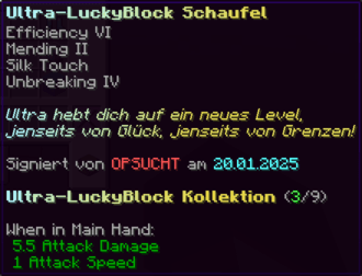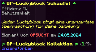 Die OP-Luckyblock Schaufel ist perfekt für jeden Gärtner und Abenteurer. Mit Effizienz IV gräbt sie schnell, und Behutsamkeit sorgt dafür, dass alles unversehrt bleibt. Jeder Luckyblock birgt eine unerwartete Überraschung für deine Sammlung! Signiert von OPSUCHT, ist sie unzerstörbar und bereit für jedes Abenteuer.