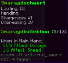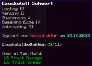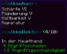 Ein Schwert, das mit "Rückstoß III", "Schärfe VI" und "Unzerbrechlichkeit VI" ausgestattet ist, ist es bereit, jede Bedrohung abzuwehren und gleichzeitig die Geschichten zu schreiben, die noch Generationen später erzählt werden.