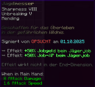 Effekt: +50% Job-XP beim Jägerjob (wirkt nicht in der End-Dimension)