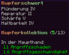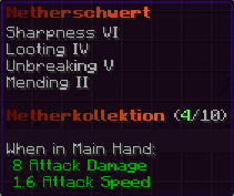 Ein Schwert, geschmiedet aus dem Herzen eines Sterns, scharf genug, um die Dunkelheit zu durchschneiden. Mit Plünderung III, Reparatur und Schärfe V ist es der Alptraum jedes Monsters und der beste Freund eines jeden Ritters.