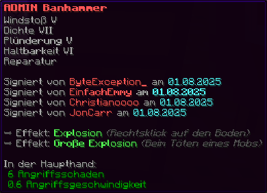 Der Bannhammer entfesselt mit Windstoß V gewaltige Kräfte und durchdringt mit Dichte VII sogar den dicksten Schutz. Dank Plünderung V werden die besiegten Feinde nicht nur ausgelöscht, sondern auch ihrer Schätze beraubt. Mit Haltbarkeit VI bleibt der Hammer lange einsatzbereit und Reparatur stellt sicher, dass seine zerstörerische Macht nie versiegt.