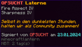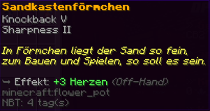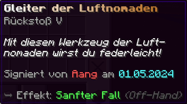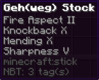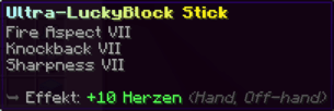 Ein unscheinbarer, aber mächtiger Gegenstand, der das Schicksal beeinflusst. Mit Feueraspekt VII, Rückstoß VII und Schärfe VII verzaubert, entfacht er eine unaufhaltsame Kraft.