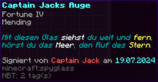 Ein mystisches Fernglas, das dir nicht nur die Weiten der Welt, sondern auch den Ruf des Meeres und der Sterne näherbringt. Mit seinem Glückssegen (Glück IV) entdeckst du verborgene Schätze, und dank der magischen Reparatur (Reparatur) bleibt es stets in perfektem Zustand.