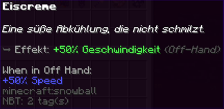 Sie schmilzt nie, egal wie heiß es wird, und gibt dir eine süße Abkühlung auf jeder Reise. Wenn du sie in der Off-Hand trägst, erhältst du einen besonderen Schub: Mit +50% Geschwindigkeit kannst du blitzschnell rennen, als wärst du der Wind selbst!