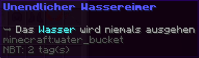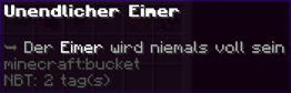Mit diesem magischen Eimer kannst du unendlich viel Wasser und Lava schöpfen, ohne dass er je voll wird. Ob du riesige Seen und Flüsse austrocknen möchtest, oder heiße Lava aus deiner Nähe entfernen willst – der Unendliche Eimer lässt dich das Unmögliche möglich machen.