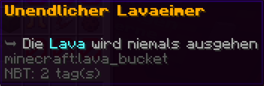 Der Eimer dient dir als unendliche Lavaquelle - egal, welche Mengen du benötigst: dieser Eimer ist immer für dich bereit, immer voll mit Lava, und wird nie versagen