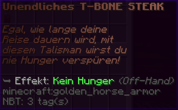 Egal wie weit oder wie lange du reist, dieser magische Talisman sorgt dafür, dass du stets gestärkt bleibst. Ob du durch dichte Wälder wanderst oder gefährliche Berge erklimmst, mit diesem Steak in der Tasche bist du immer bereit für das nächste große Abenteuer – ohne jemals hungrig zu werden!