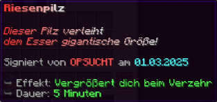 Effekt: Verkleinert dich beim Verzehr für eine Dauer von 5 Minuten