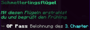 Diese kristallklaren Flügel verleihen ihrem Träger die Unnachgiebigkeit eines eisigen Gletschers. Mit Eisläufer III und Reparatur II verzaubert, ermöglichen sie das mühelose Überqueren von Gewässern.
