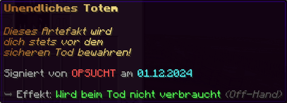 Ein uraltes Artefakt, durchdrungen von der Macht des ewigen Lebens. Dieses Totem kennt keine Grenzen – es steht dir im Moment größter Not bei und kehrt mit dir aus dem Reich der Toten zurück, ohne je zu vergehen.